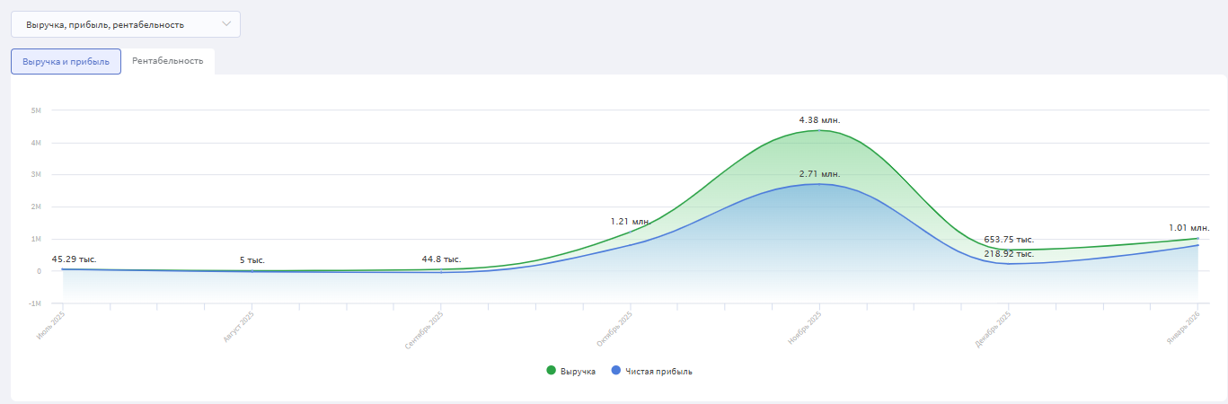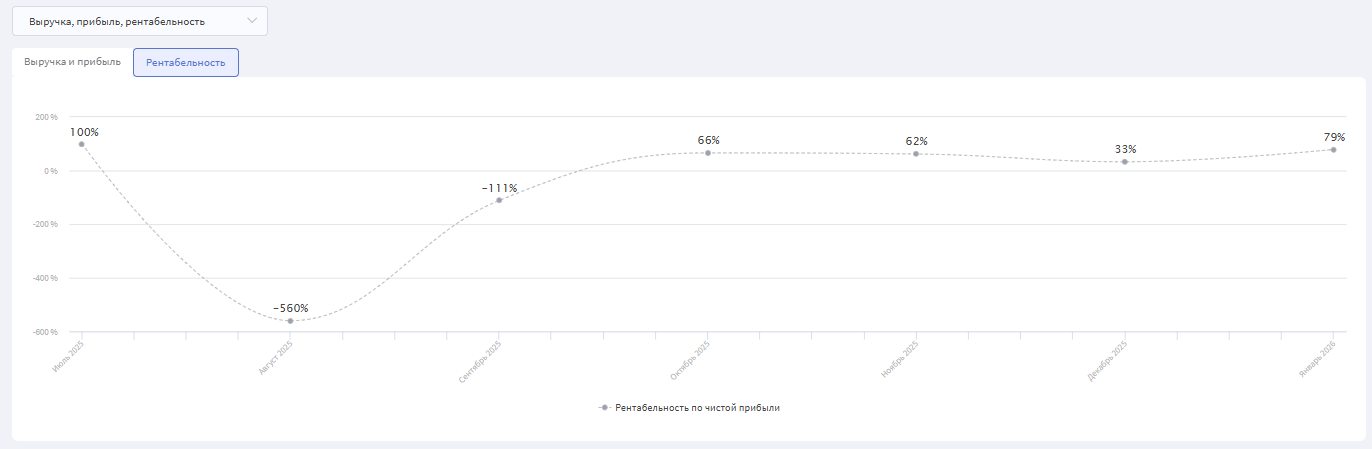 Данные о Рентабельности чистой прибыли отражены на отдельном графике Рентабельность.