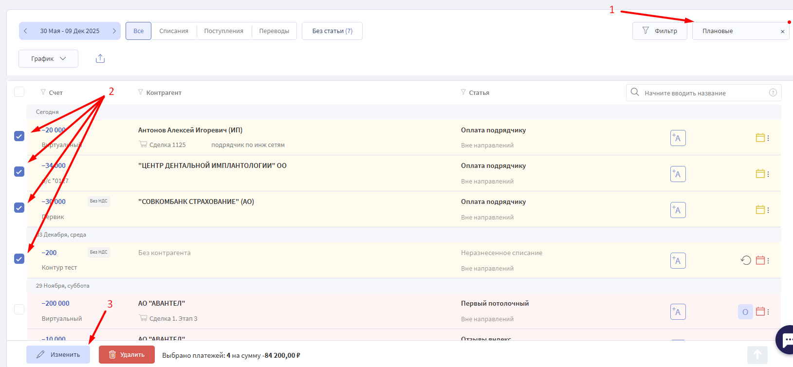 1. В Быстрые фильтры выберите Плановые