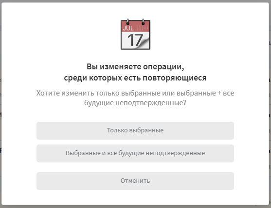 4. При наличии повторяющихся операций может появиться окно в каких операциях необходимо внести изменения.